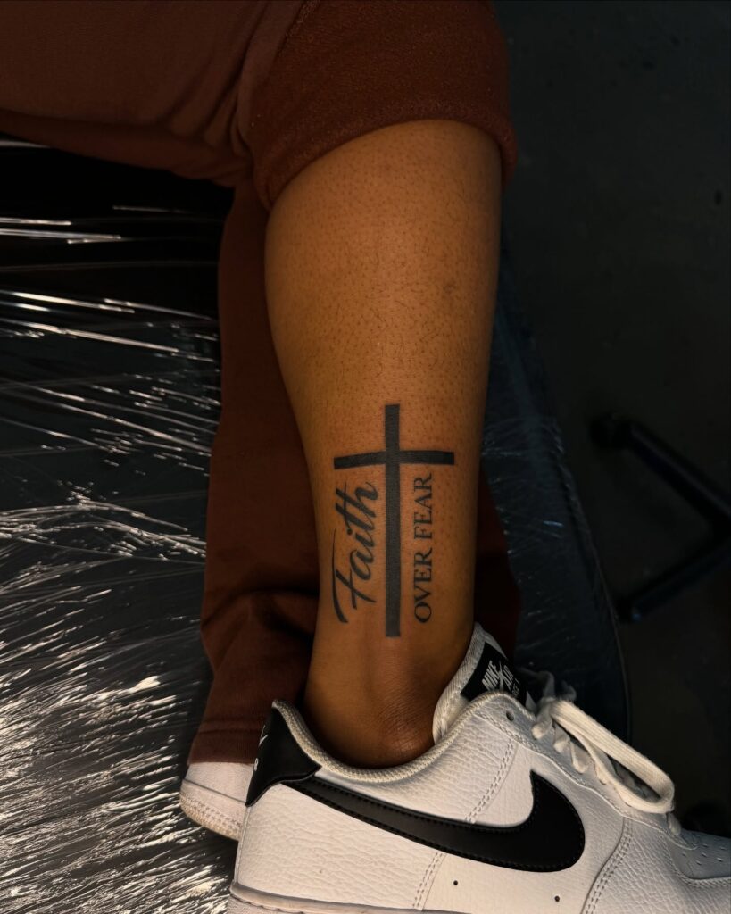 Often symbolizing faith and strength, this tattoo feels grounded and personal. The ankle placement allows the message to remain close yet visible, making it a powerful reminder carried with every step.