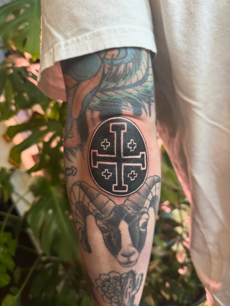 Symbolically, the Jerusalem cross represents faith, pilgrimage, and devotion. Often associated with protection and spiritual commitment, this tattoo suits someone who wants a timeless Christian emblem that quietly but confidently reflects their beliefs and personal journey.