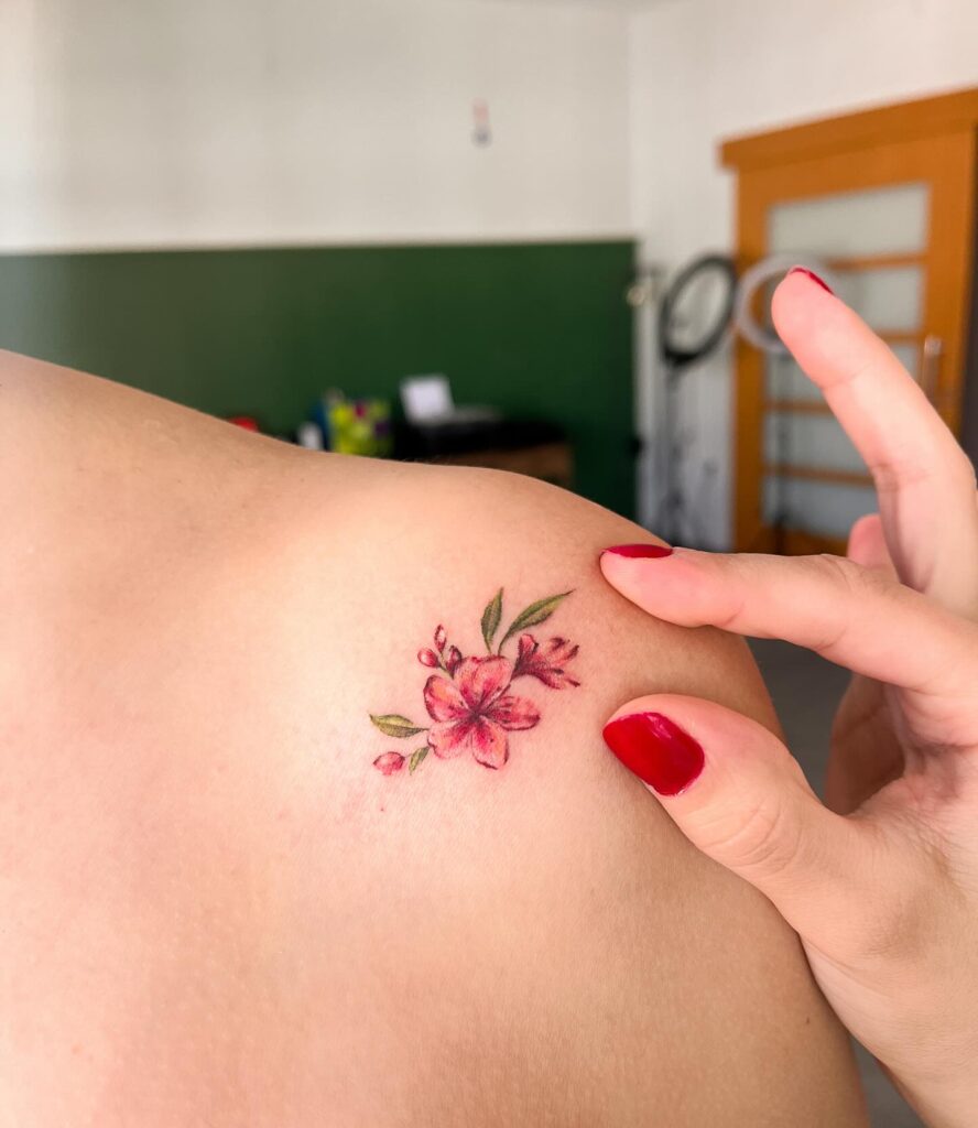 5. Tiny Watercolor-Style Floral Shoulder Tattoo